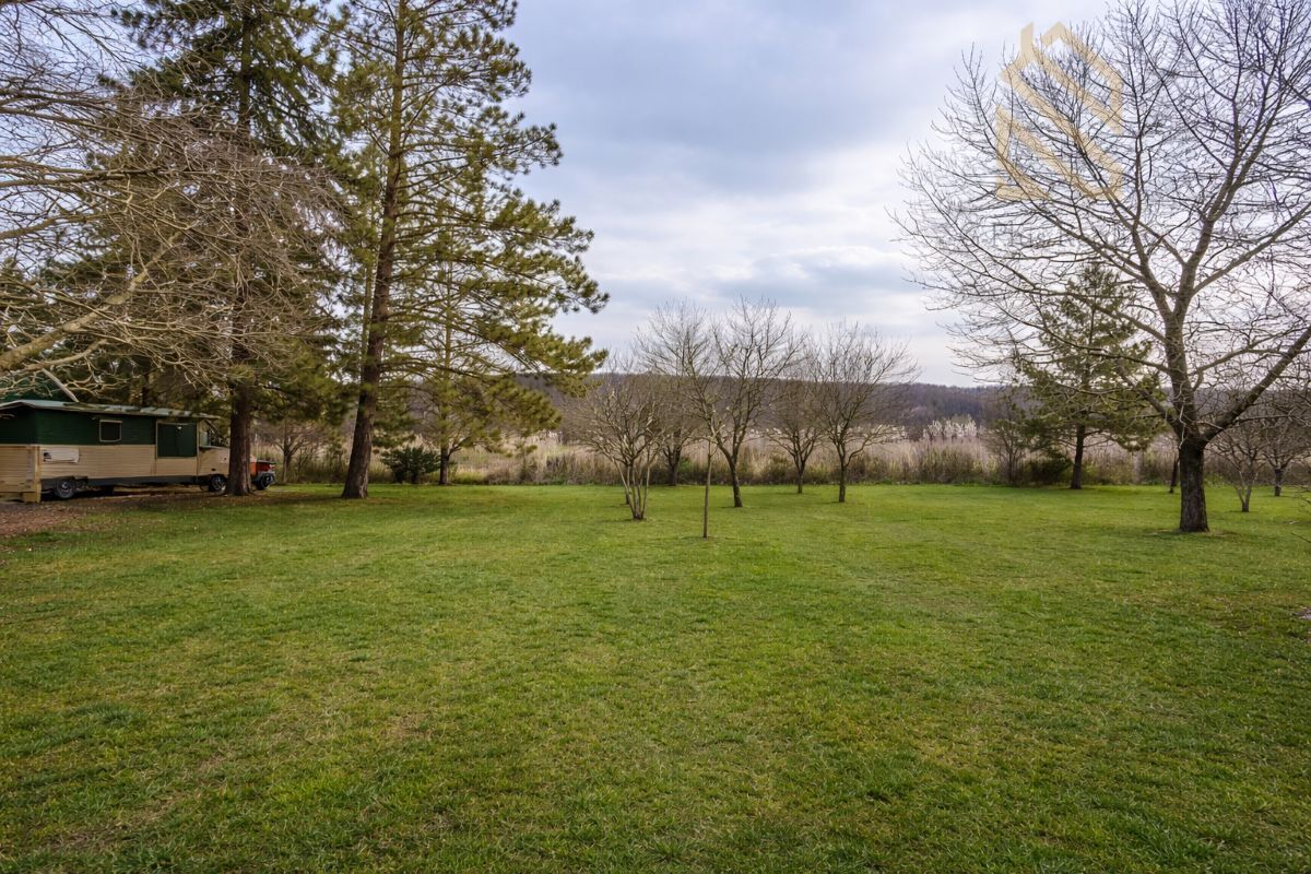 Součástí nemovitosti je pozemek o celkové výměře 2 680 m², který nabízí dostatek prostoru pro odpočinek, zahradničení i rodinné aktivity. Na zahradě se nachází vzrostlé jehličnaté i ovocné stromy, mezi které patří broskev, meruňka, švestka a třešně.